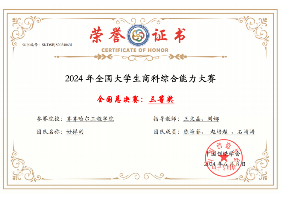 近日,2024年全国大学生商科综合能力大赛正式落幕。开云官网管理工程系互联网金融专业两组学生团队获得了国赛“三等奖”的好成绩。