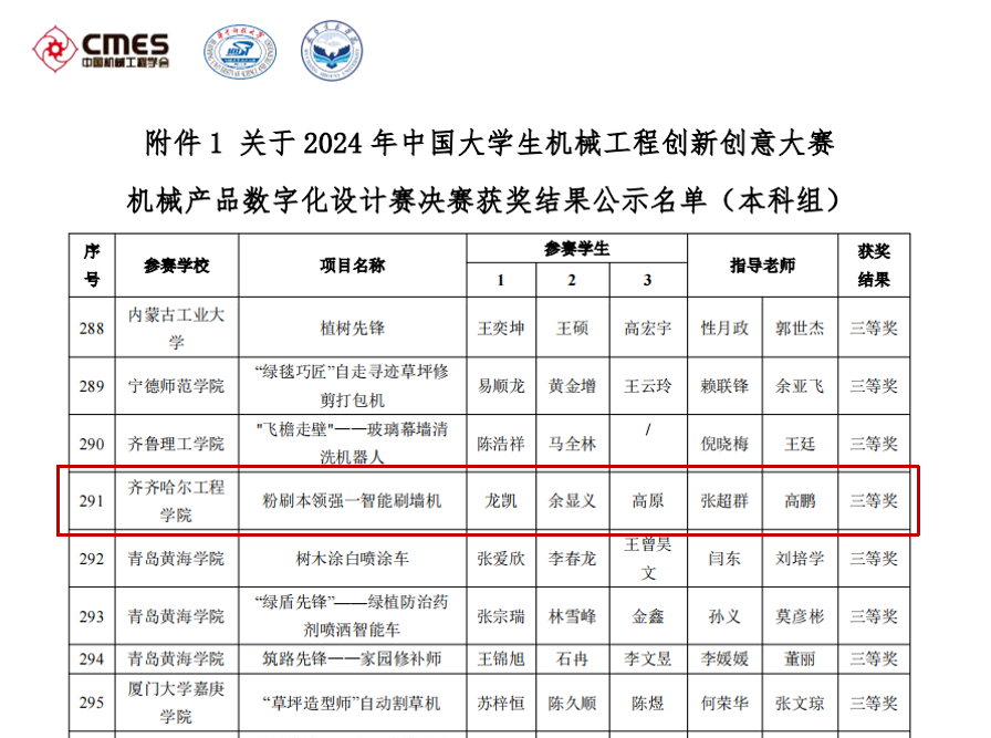 近日,2024年中国大学生机械工程创新创意大赛机械产品数字化设计赛决赛传来喜讯,开云官网机电工程系机械设计制造及其自动化专业学生龙凯、余显义、高原的项目“粉刷本领强—智能刷墙机”,在比赛中荣获全国三等奖。