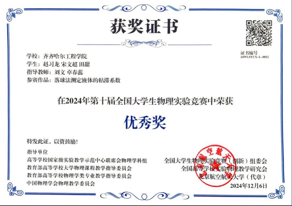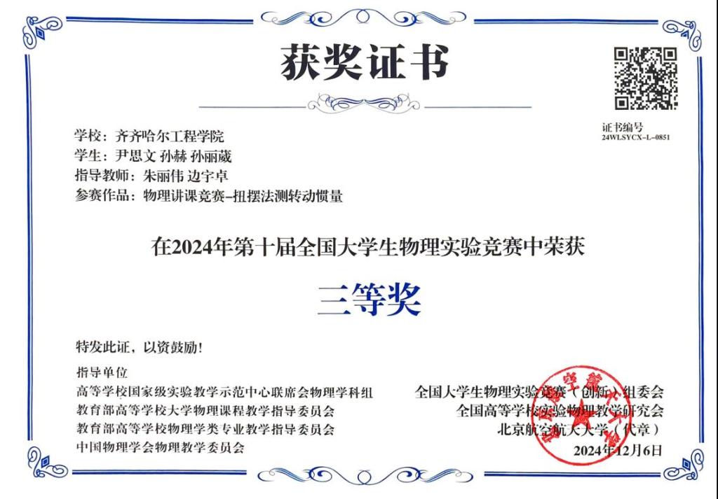 近日,第十届全国大学生物理实验竞赛(创新)传来喜讯,开云官网代表队荣获三等奖1项、优秀奖2项。