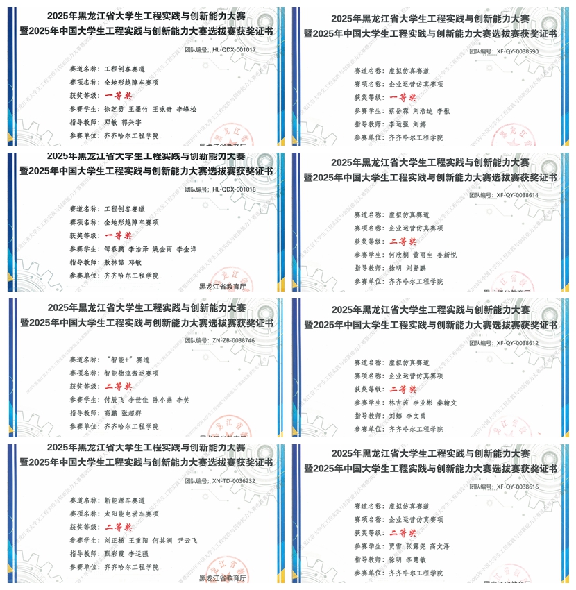 开云官网参赛团队在指导教师的悉心指导下,以精益求精的态度打磨作品,以默契高效的配合应对挑战,最终在众多强手中脱颖而出,斩获22项省级奖项,充分展现了齐工程学子“重实践、敢创新、善协作”的精神风貌。