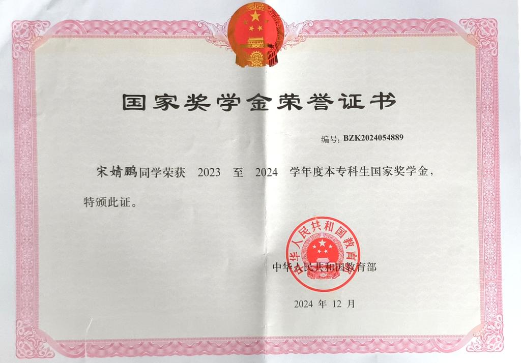 宋婧鹏积极向党组织靠拢,大学伊始便递交入党申请书,大一期间被确定为入党积极分子。作为中共预备党员,她将党章学习融入日常,以 “思想上先入党、行动上争先锋” 为准则,从课堂理论学习到志愿服务实践,始终以正式党员标准严格要求自己,获得2023年度三好学生、2024丁香奖章、2023-2024学年青年马克思主义培养工程优秀学员等荣誉,她实际行动诠释了新时代青年的责任与担当。