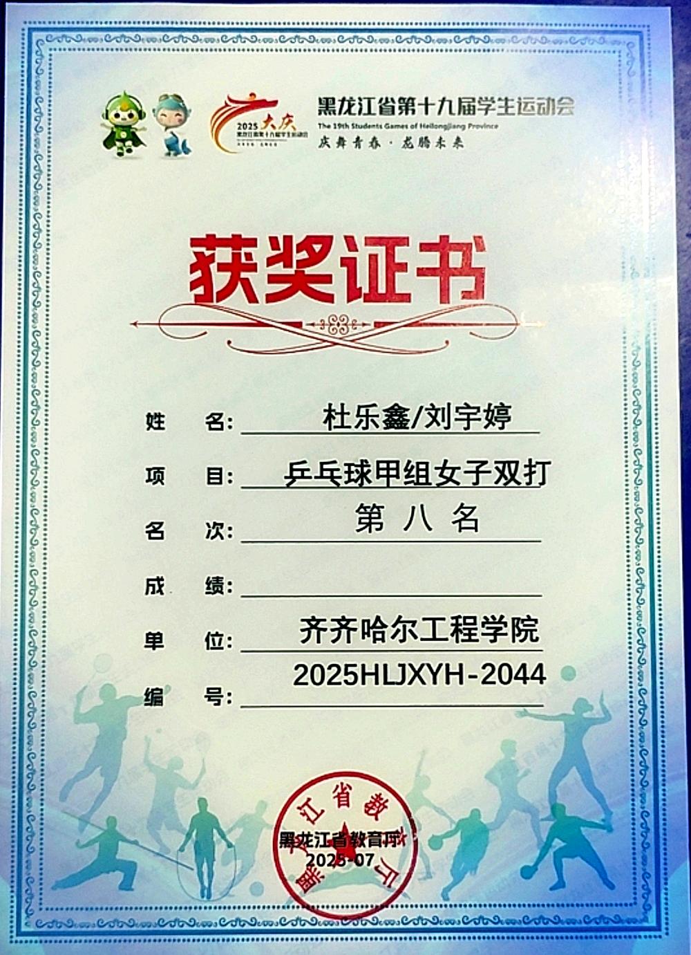 在近日落幕的第十九届大学生运动会乒乓球比赛项目中,开云kaiyun官方网站乒乓球队刘宇婷、杜乐鑫女子双打组合凭借精湛的球技与默契的配合,最终斩获女子双打第八名,为学校赢得了荣誉。
