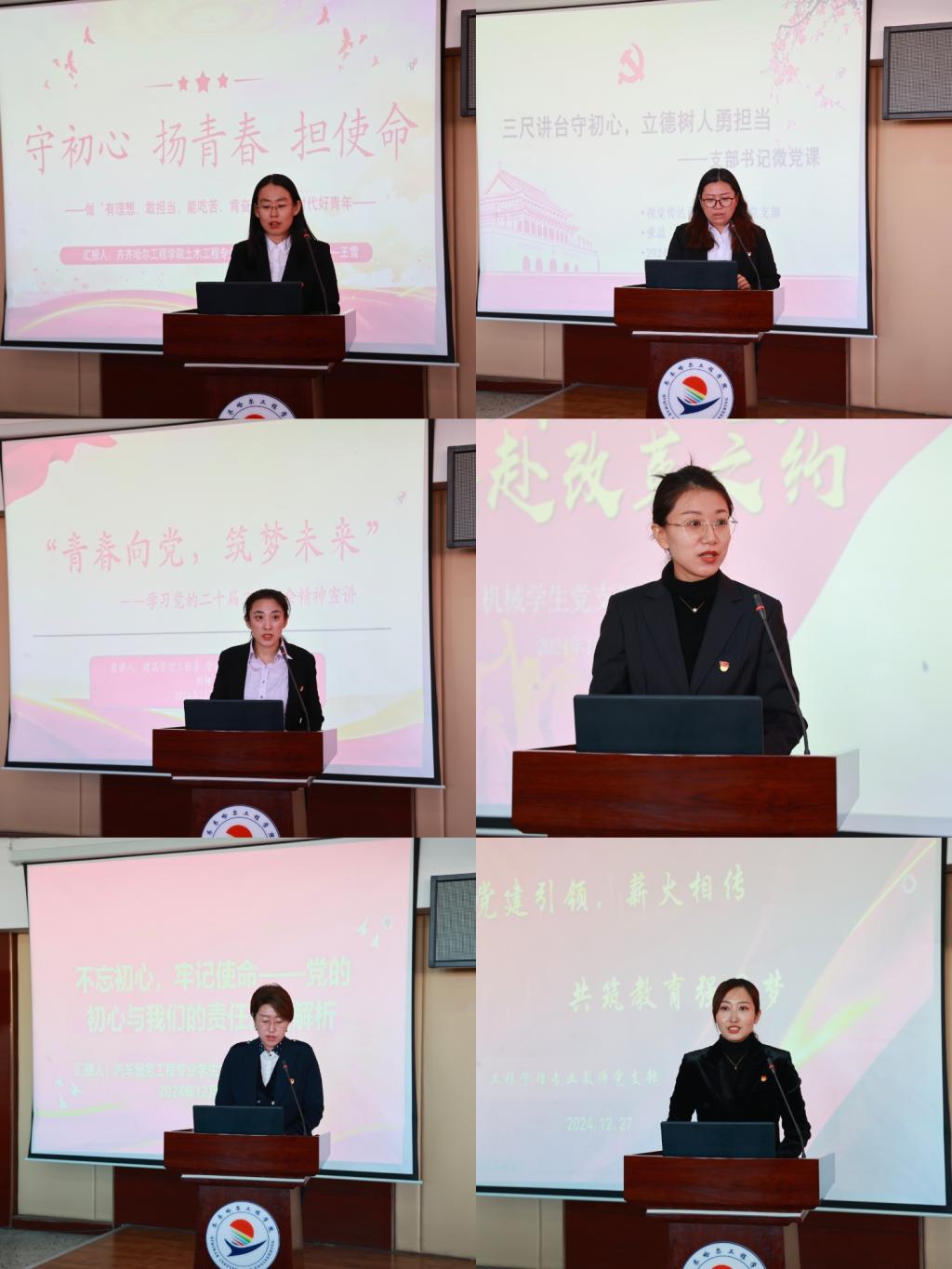 12月27日,在图书馆501报告厅举办决赛。各二级党组织和基层党支部书记、委员以及各系党总支专职组织员近百人观摩比赛。党委书记郭伟东出席活动并发表讲话。党委委员、党委组织部部长、党委教师工作部部长王丹,党委委员、党委宣传统战部部长张苗,机关党总支书记张平、马克思主义学院党支部书记赵婷婷、基础部党支部书记乔亚男担任本次比赛评委。大赛由党委组织部副部长张婷婷主持。