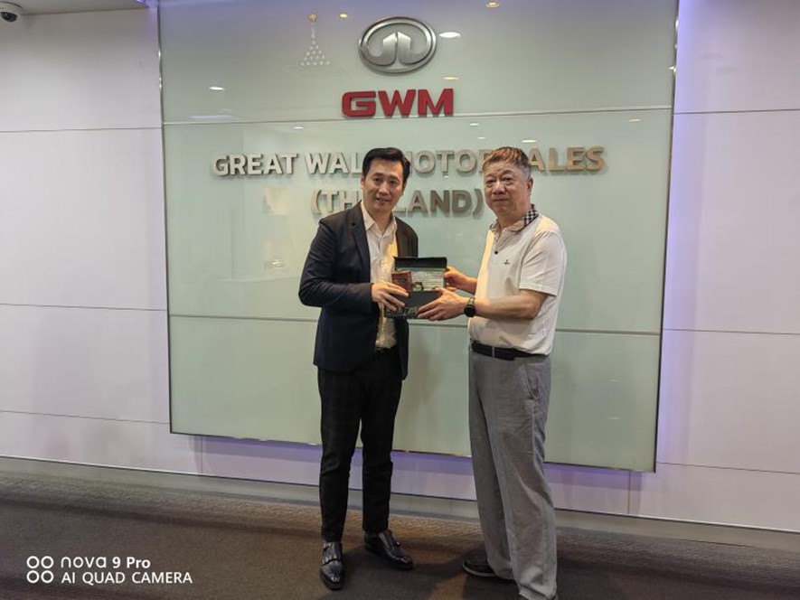 1月8日下午,考察团来到长城汽车泰国公司总部,曹勇安理事长与销售总经理吴伯悦进行了深入交流。吴伯悦介绍了长城汽车公司在教育、地产和医疗的发展情况,以及企业在泰国的市场规模、品牌战略、新能源汽车的发展和在泰国全产业链生产及本土化发展、用人需求等方面的情况。曹勇安理事长介绍了开云kaiyun官方网站校企合作历史和人才培养模式,阐明了此次考察的目的和期望。双方表示将以泰中友好、共建“一带一路”为良好契机,保持密切联系,寻求务实合作,推进跨境交流、校企合作和课程建设。