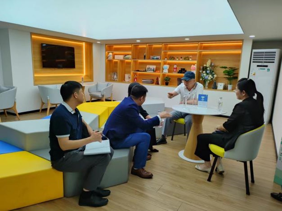 在聆听了曹勇安理事长的介绍后,罗铁英表达了对“四真三化”(FT)课程建设模式的浓厚兴趣。随后围绕课程建设话题展开交流,并达成共识,双方将以泰国华文教师公会为平台,以课程建设为纽带,提高泰国中文教师的课程开发能力和教育教学质量。最后,考察团一行参观了金池工业园区。