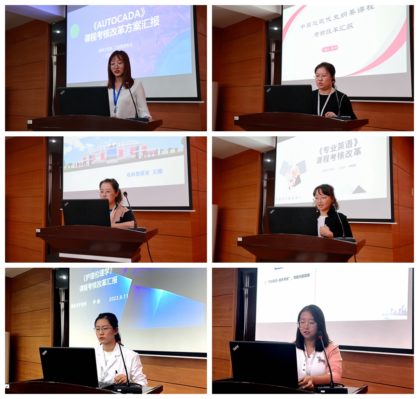 此次评比活动共有14门课程申报,经部门推荐、教务处审核,最终评选出6门课程(5门专业课和1门公共课)进行交流评比。各门课程改革成效显著,从考核内容、成绩构成、评价方法手段、达成度等方面展现了亮点和特色。
