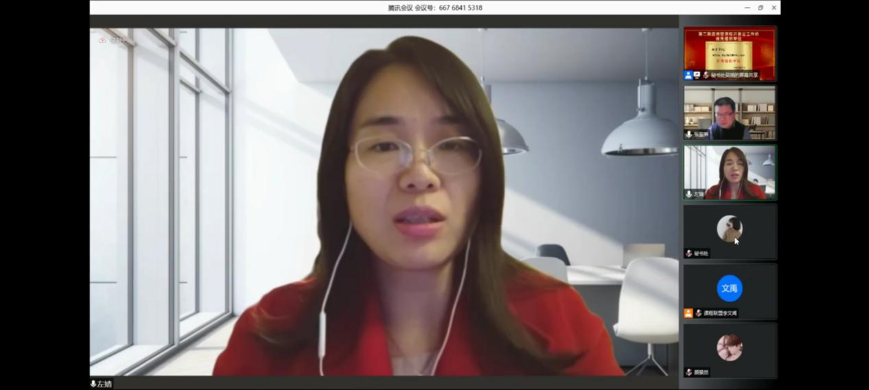 南宁学院教师发展中心主任左婧介绍了南宁学院以课程建设为抓手,深化人才培养模式改革实践,感谢联盟组织求真务实的工作坊,促进了教师专业发展。