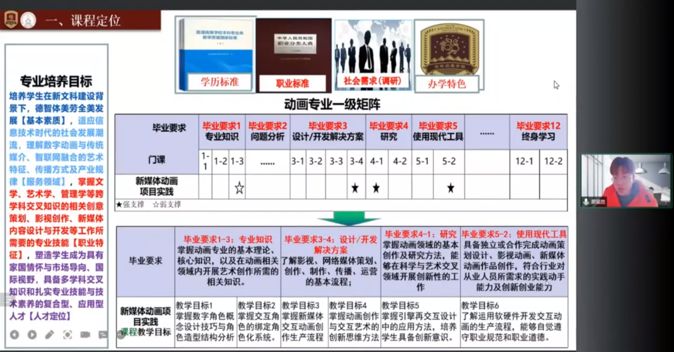 联盟副秘书长李文禹介绍了本期工作坊的基本情况,包括参训学校基本情况、参训学员基本情况、作业完成情况以及结业情况等。来自邢台学院申玉革老师、南宁学院陈艳艳老师、吉林动画顾景然老师、河北民族师范学院艾珊珊老师四位学员做课程开发设计展示,四位讲师做点评。