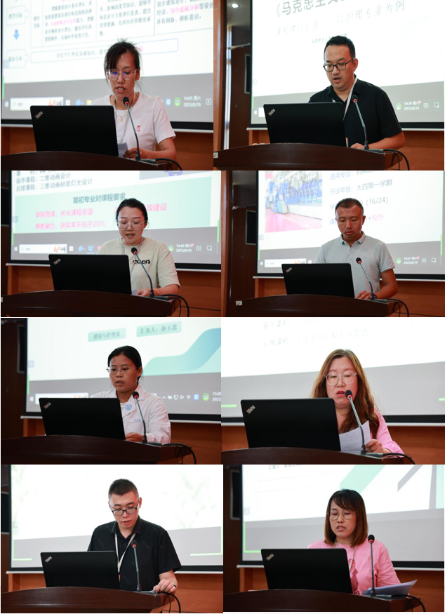 本学期教师开课资格审查活动中,通过现场双抽的方式,从136位教师中随机抽签选定8位进行汇报。教师们以专业学年教学目标为引领,以落实专业对门课建设要求为主线,系统阐述该门课程的基本思路和主要目标任务。