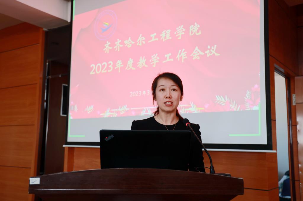 教务长张静作题为《聚焦“双特”建设,促教育教学高质量发展》的报告,她从审核评估、课程改革、专业实践和师生竞赛四个角度总结了2022年学校教学工作取得的成绩;结合新形势和新要求,对2023-2025年学校立足“双特”建设、实施教学质量提升工程进行了规划;从审核评估、大思政课建设、产教融合、教学研究等方面,部署了2023年教学重点工作;对本年度课堂教学质量提升从八个方面做了详细安排。指出,学校要持续深化教学改革和产教融合,凝练应用型人才培养特色。