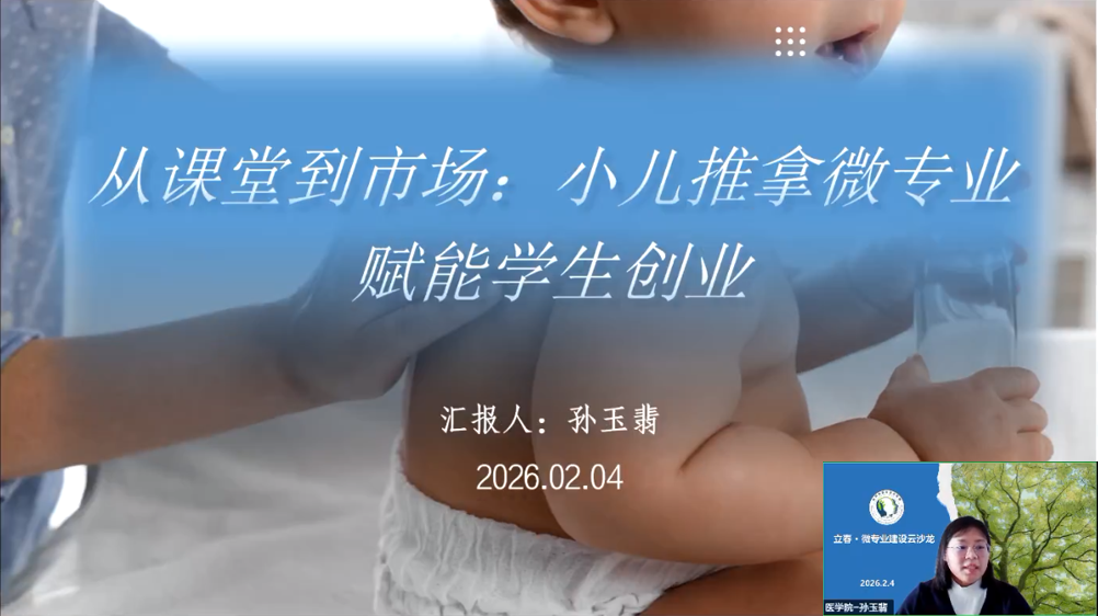 开云官网医学院护理基础教研室主任孙玉翡作题为《从课堂到市场:小儿推拿微专业赋能学生创业》的分享,该专业紧扣“健康中国”战略与市场刚需,破解助产学专业就业困境。依托校内实践基地,构建核心课程体系,创新差异性项目式教学,增设创业支持体系,形成“理论+实战+运营”培养模式。学生考证通过率大幅提升,涌现出“毕业即开店”的成功案例。专业还反哺主专业建设,形成“创业带动就业、就业反哺教学”的良性循环,为微专业建设提供了可借鉴的范本。