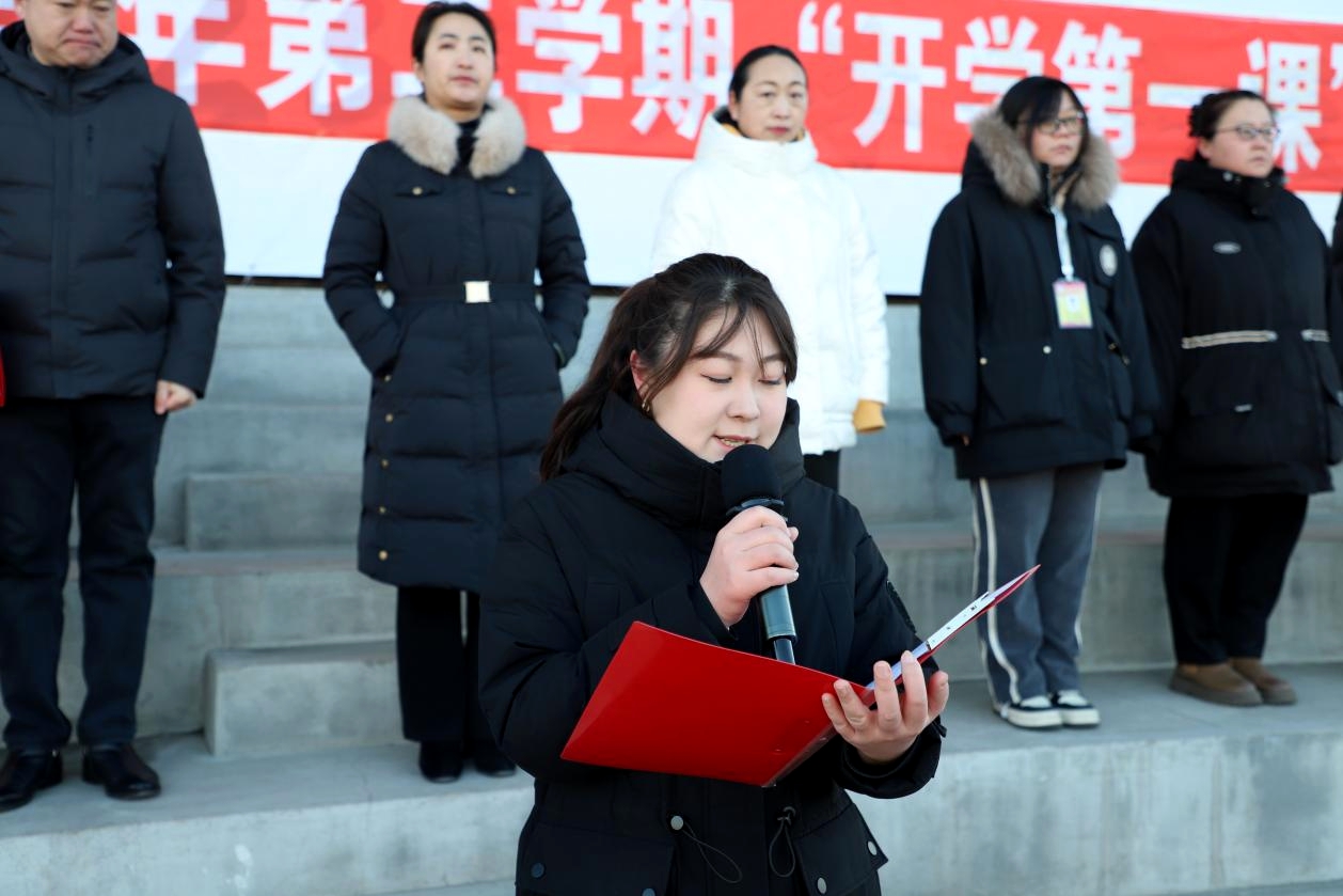 学校学生会主席杨嘉赫宣读新学期倡议,表示,新学期要认真制定目标计划,合理安排学习生活,以饱满的状态、崭新的姿态和积极的行动为学校增光添彩。