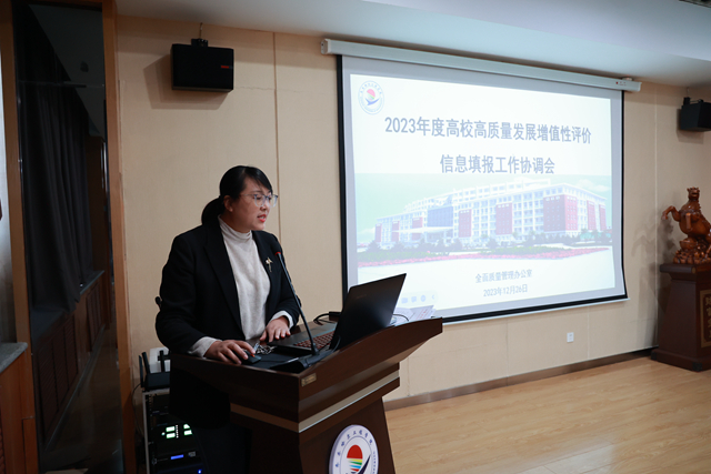 全面质量管理办公室主任孟艳辉介绍了高质量发展增值性评价信息填报内容、填报流程以及填报系统操作要点等,明确了工作流程与职责分工。