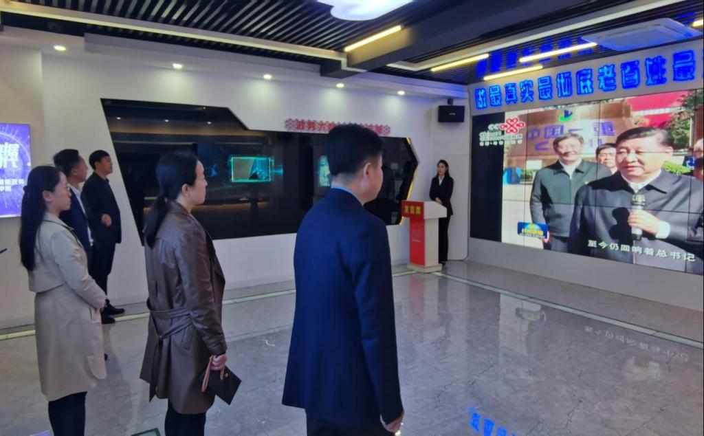 公司副总经理孙进带领访企拓岗组一行首先参观了联通IDC机房,了解联通云算网络。之后参观了公司数字政务体验中心,并进行座谈。