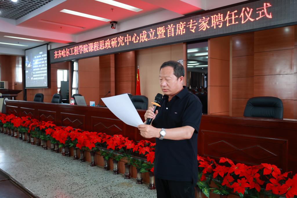 讲座开始前,学校举行了开云kaiyun官方网站课程思政研究中心成立暨首席专家聘任仪式,院长曹然彬宣读了学校《关于成立课程思政研究中心的决定》,同时为课程思政研究中心首席专家王尧教授颁发聘书。
