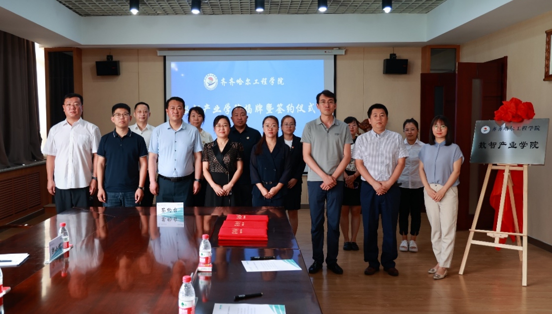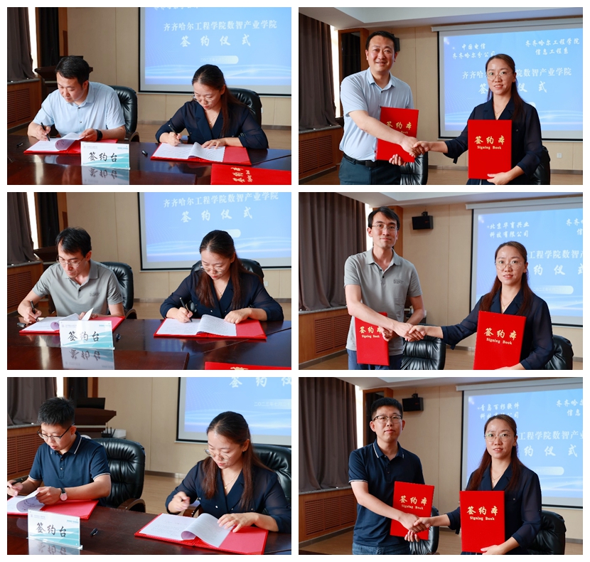 7月28日上午,开云官网信息工程系与三家企业在图书馆603会议室举行“数智产业学院”揭牌暨签约仪式。副院长张静,信息工程系副主任刘春媛、学生工作副主任孙晓芳、系党总支书记李野及相关专业负责人与中国电信齐齐哈尔分公司副总经理高刚、北京华育兴业科技有限公司总经理李德辉、青岛百杉软件科技有限公司总经理王付健共同参加,系教学工作副主任姜岩主持。