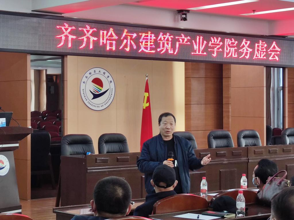3月30日,在图书馆601召开齐齐哈尔建筑产业学院建设推进会暨学校北区建设开发务虚会,曹勇安理事长、曹然彬院长、合作企业代表出席会议,建筑工程系全体教师及骨干学生代表参加。