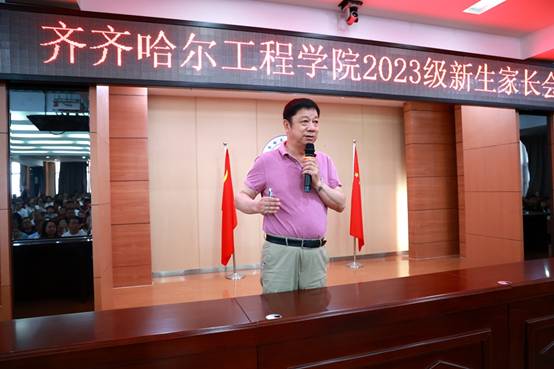 校党委副书记张振笋以《家校共育 助TA成长》为题,给家长们提出了中肯的建议,以达到家校共育,助力学生成长成材的目的。他从细节处入手,强调了家长与学校对学生入学、假期、毕业前的时间节点上要注意的事项,并强调家校各种联系要畅通;鼓励学生积极参加学校举办的各种有益活动。最后,与家长现场建立了微信群。