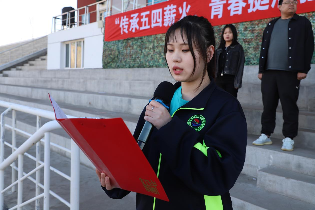 学生工作处负责人王丽萍讲话。她表示,作为新时代的齐工程学子,要铭记五四精神、传承红色基因,自觉以习近平新时代中国特色社会主义思想武装头脑,深入学习贯彻习近平新时代中国特色社会主义思想和党的二十大精神,广大团员青年做红色基因的传承者和实践者,肩负起新时代赋予青年的时代责任和历史使命,努力做走在时代前列的奋进者、开拓者、奉献者,以实际行动回应党中央对新时代青年的深切期望,在学校审核评估工作中发挥积极作用,为创建百年老校而不懈奋斗。