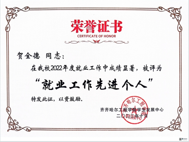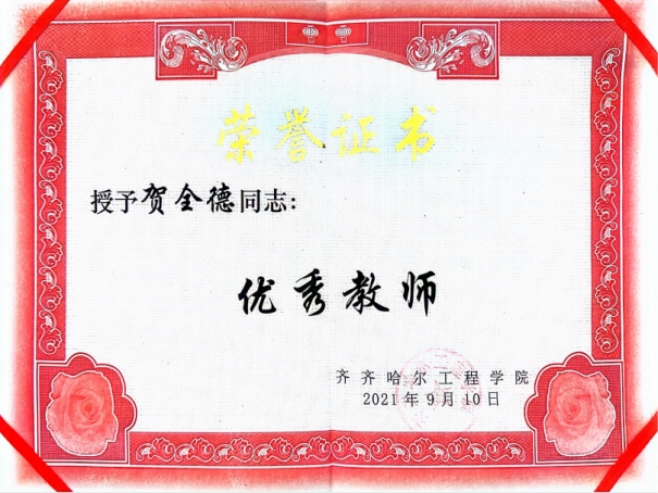 入职以来,贺全德荣获学校“优秀教师”“优秀共产党员”“就业先进个人”等荣誉称号。他充分发挥自己的专业优势和多年的企业工作经历多次指导学生参加各类专业竞赛,取得了多项校级、省级、国家级奖项。