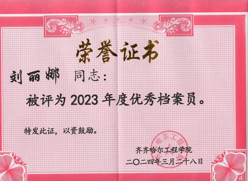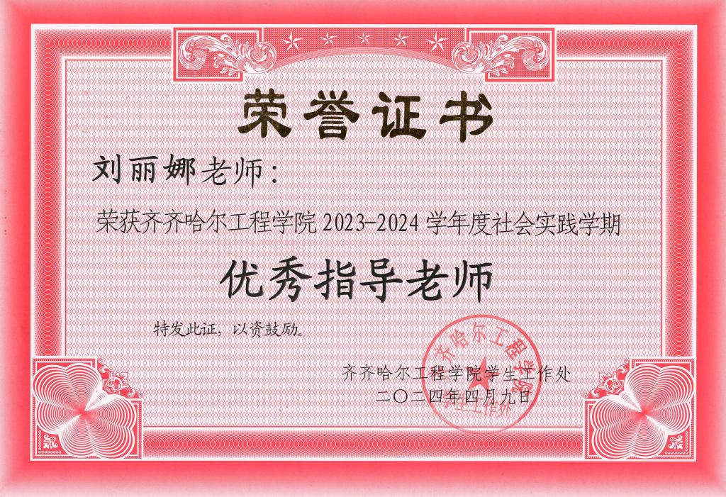 端午节,她组织师生午餐会,与学生共同包粽子,介绍学校文化,介绍民俗文化,增强民族自豪感,坚定文化自信。在日常教学工作中,她严格要求自己,模范遵守教师职业道德和校纪校规,做学生的楷模。关心爱护学生,耐心引导、悉心教导,助力学生成长成才。在工作中,刘丽娜获得多项荣誉优秀党员、优秀指导教师、优秀档案员等,她表示,这是学校及领导对她工作的认可和肯定。这些荣誉鼓励和激励,她将把这些荣誉转化为动力,为学生成长贡献更多力量。