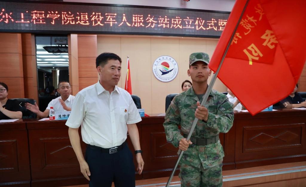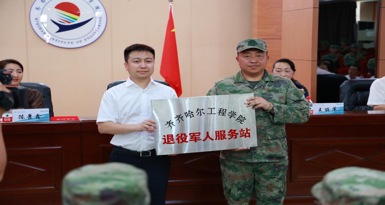 7月22日上午,学校在图书馆601报告厅举行退役军人服务站成立仪式暨“橄榄绿”志愿服务队授旗仪式。市退役军人事务局党组书记、局长吴寒,党组成员、副局长杨军,市退役军人服务中心主任刘成,龙沙区退役军人事务局局长徐万柱等领导,学校党委副书记、常务副院长陈景鑫、学生工作处负责人王丽萍,武装部副部长孙晓芳,各系党总支副书记、辅导员、“橄榄绿”志愿者代表及学长教官团全体成员参加仪式。