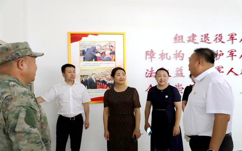 揭牌仪式后,孙晓芳带领吴寒一行实地查看了退役军人服务站建设情况和学长教官团实操队列训练情况。