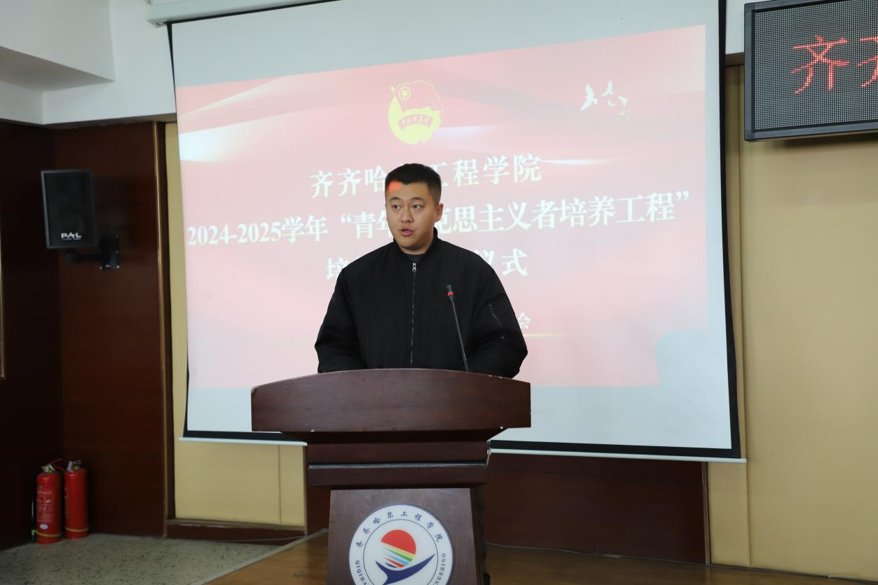 2023-2024学年“青马工程”优秀学员、信息工程系动画231班韦俊蓉发言,他希望本期学员能够抓住机会,努力学习,成为一名自强自立、奋斗不息,合格的青年马克思主义者。