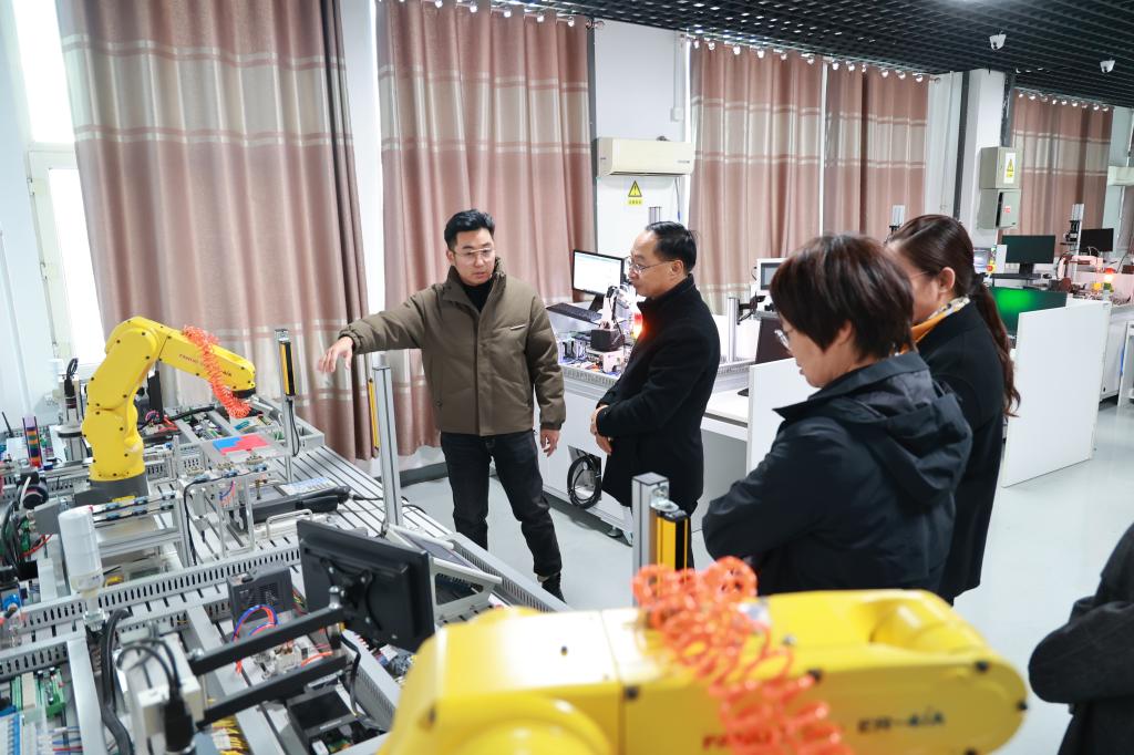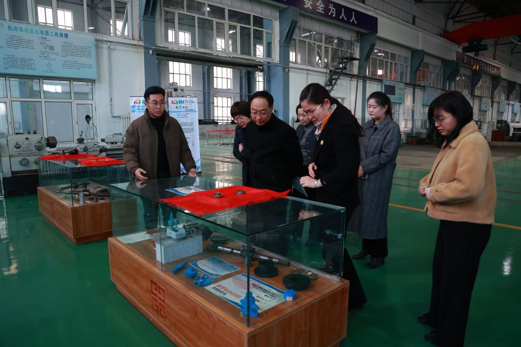 调研组一行参观了校内产教融合基地、机械与电气工程实验中心、头雁工作室,听取了敖林喆关于齐三机床厂的发展历程、自然状况,以及培养目标、运营模式等情况。