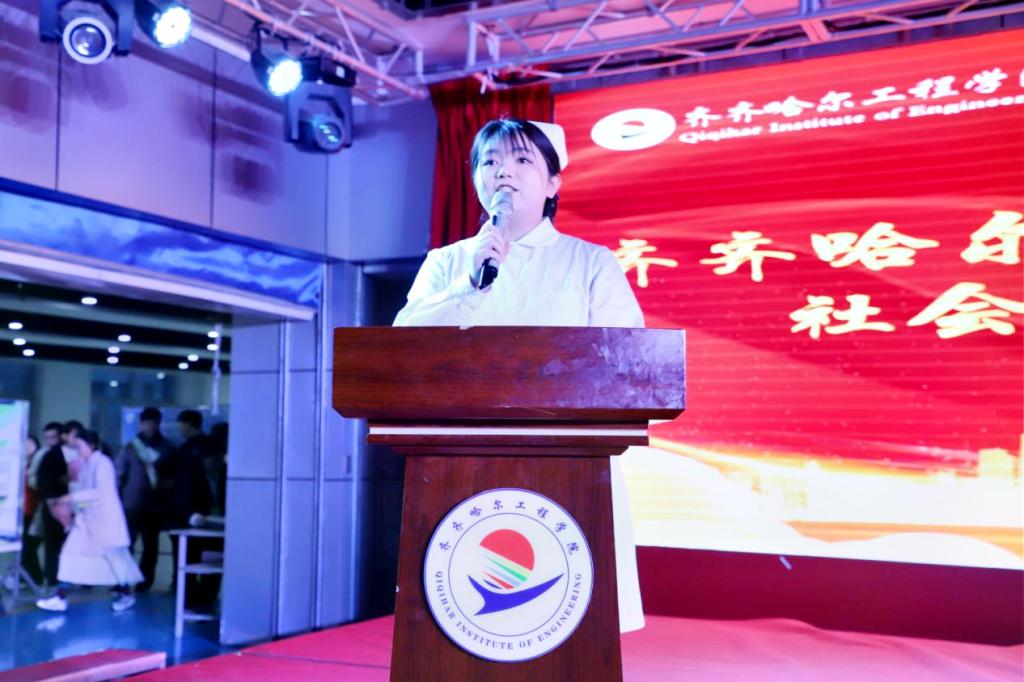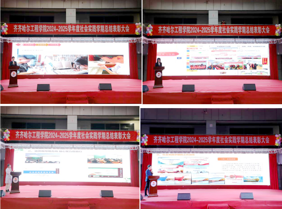 陈景鑫作总结发言,她表示,在社会实践学期中,学生们凭借专业知识,积极投身于社会实践,以实际行动生动诠释了“高素质应用型人才”的深刻内涵,展现了齐工程学子的责任担当。她对全体学生提出三点希望,一是保持昂扬向上的精神风貌,以更加饱满的热情和更加坚定的信心,投身到后续的学习和实践中;二是发挥模范带头作用,以身作则,共同营造风清气正、积极向上的良好学习氛围;三是不断探索未知,勇于创新实践,努力成为德智体美劳全面发展的社会主义建设者和接班人。