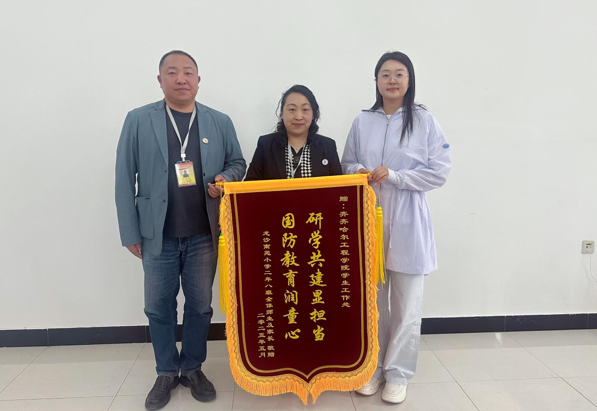 活动最后,龙沙小学家长代表向学生工作处赠送了锦旗,感谢学校精心组织的国防教育活动,对孩子们国防意识培养和意志品质锤炼具有重要作用,也诚挚感谢学长教官们在活动中的悉心指导,以实际行动为孩子们筑牢爱国强军思想作出榜样。