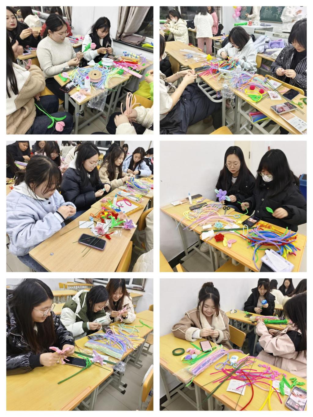 活动中,女生们选择自己喜欢的颜色进行制作,展示出大家审美与想象力。活动最终由建筑工程系团总支评出一等奖一名、二等奖两名、三等奖三名、优秀奖若干。