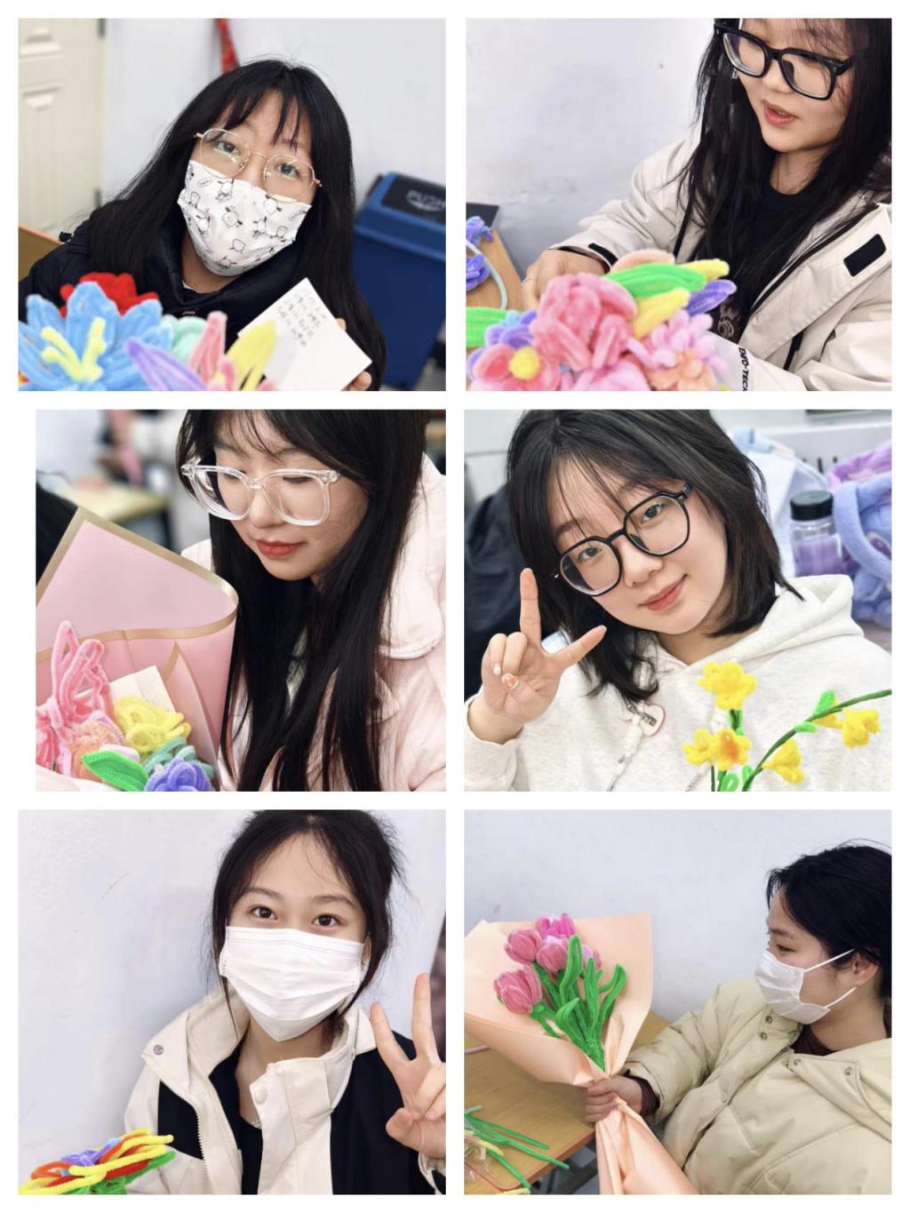 女生们在制作美丽精致的DIY扭扭棒花束中,体验到合作、沟通、创造和分享带来的快乐与满足感,丰富了女大学生的校园生活,使大家真挚交流,表达美好愿望,获得自立自信。建筑工程系团总支表示,希望本次活动能给女生们带来快乐,也祝所有女生们“女生节”快乐。