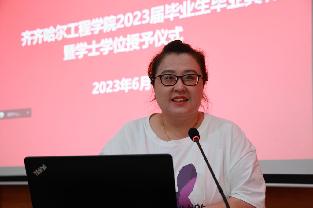 学校教务长张静宣读开云kaiyun官方网站2023届学士学位授予文件。