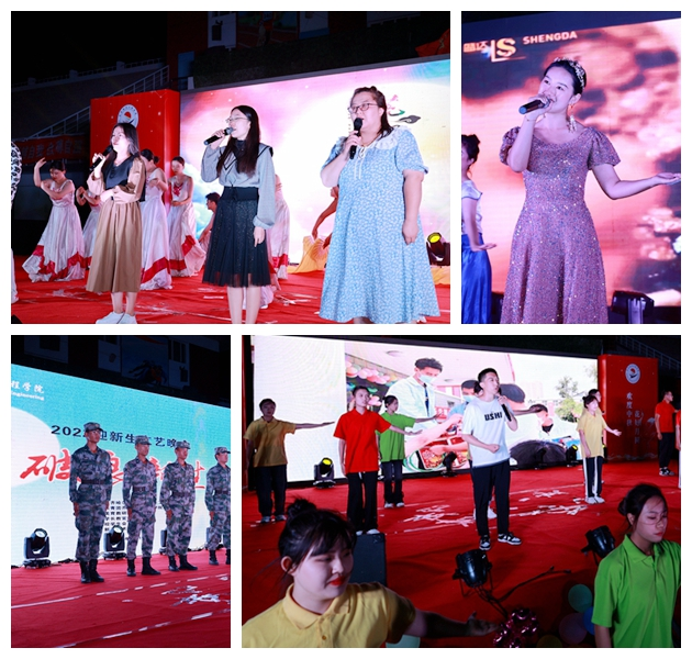 管理工程系的舞蹈《oh》展示出大学生青春靓丽的风采;健康与护理系表演的舞蹈《abolescent girls》,节奏动感、活力四射,演出现场气氛热烈;新生辅导员带来的歌伴舞《明月升》,优美的旋律,动听的歌声,令台下师生沉醉其中;基础部张智琛老师演唱的歌曲《鹤城的味道》,由学校党委宣传部尹剑飞老师作词,歌曲借嫩江清流,将鹤城美食娓娓道来,旋律似舞随风,歌声似磬幽韵,赢得了大家的阵阵掌声。机电工程系歌伴舞《我相信》、新生艺术团《歌曲串烧》、建筑工程系舞蹈《shake it》等节目轮番上演,形式多样,内容多彩,引得现场观众的掌声和欢呼声不断。
