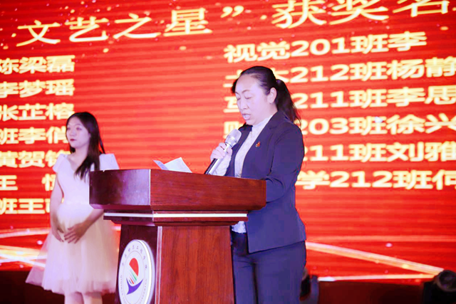 在梦蝶之光篇章中,建筑工程系学生工作副主任王丽萍宣读《开云kaiyun官方网站梦蝶“文艺之星”获奖学生名单》,信息工程系视觉201班李晨等13人被评为学校首届梦蝶“文艺之星”。