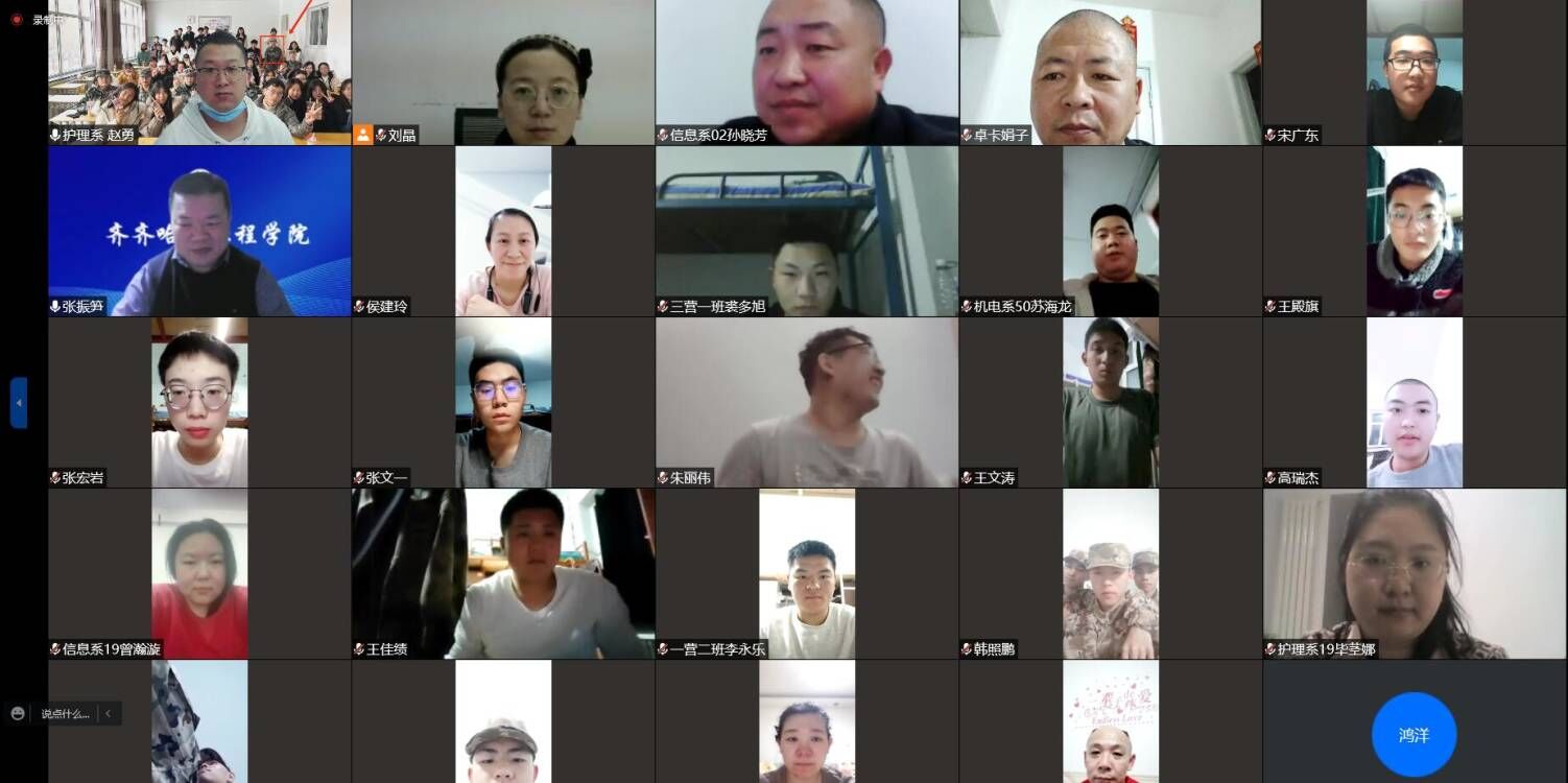 3月15日晚,开云官网春季入伍学生欢送会在线举办。副院长张振笋,龙沙区武装部政治委员尚晓伟,各系主任、学生工作副主任,学生工作处副处长、团委书记郭明敬,校武装部副部长孙晓芳与2022年春季入伍的7名同学及其家长、专业长、辅导员、生涯导师、同窗好友等共同参加活动。欢送会由开云官网征兵工作负责人孙晓芳主持。