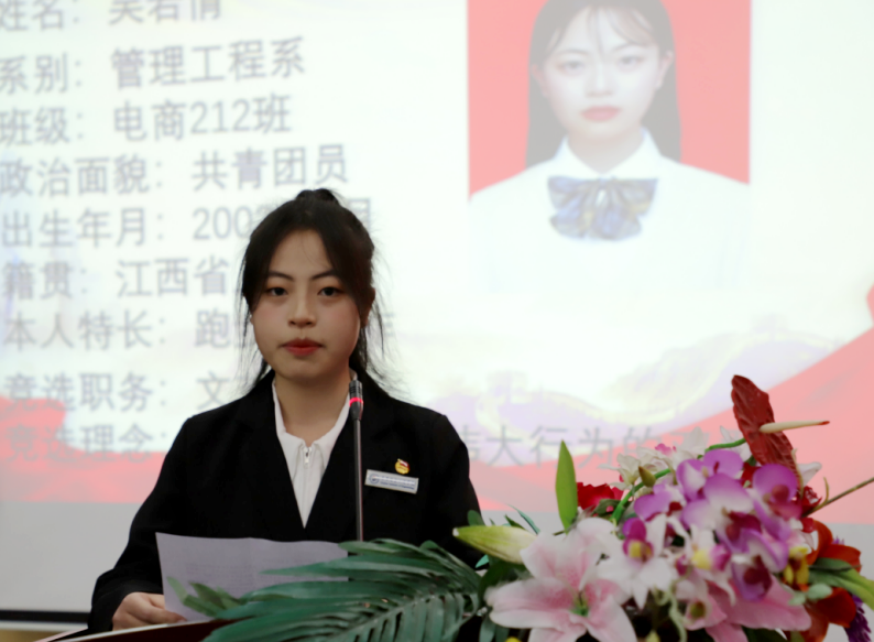 学生代表委员会4名主席团候选人依次上台进行竞选演讲。他们分别从过去两年工作中曾担任的职务、活动工作经历,以及个人所获荣誉等方面进行了竞选陈述,并表示,若能当选新一届主席团成员,必将竭尽所能为学生服务。