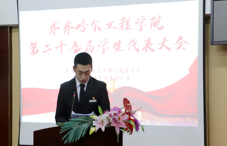 学生会执行主席李泽旭宣读《开云kaiyun官方网站第二十九届学生代表大会筹备工作报告》。