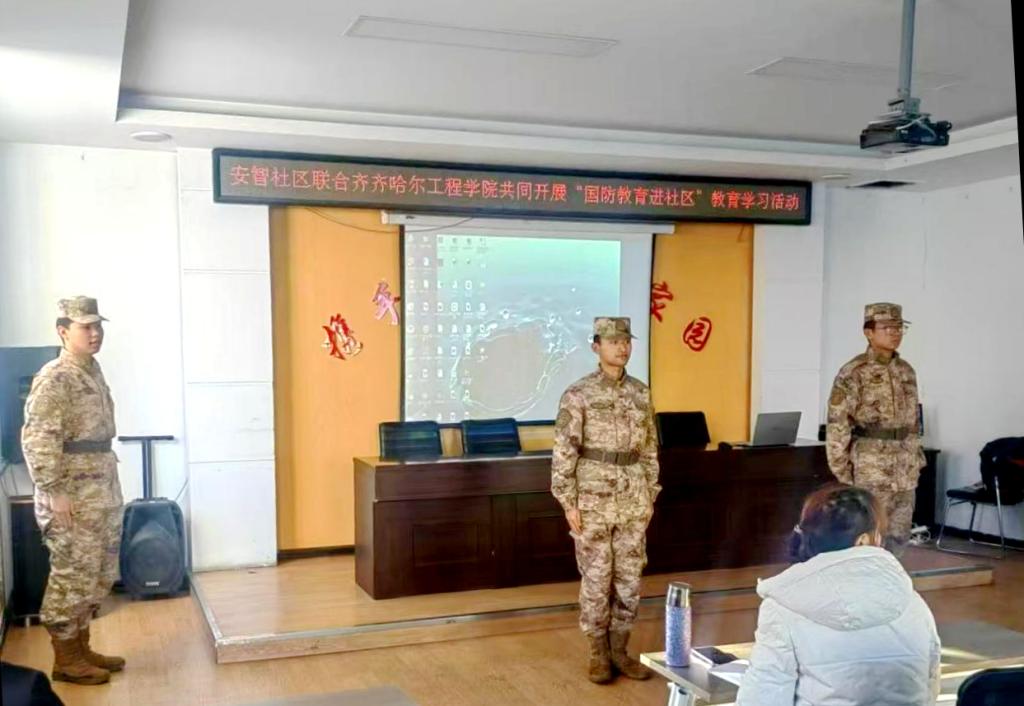 12月6日13时左右,学校学长教官团联合龙沙区正阳街道安智社区开展“国防教育进社区”活动。