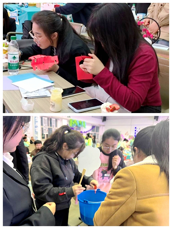随着开场舞欢快的舞步,生日会正式拉开帷幕。游戏环节精彩纷呈,在 “生日幸运圈” 的挑战中,同学们热情高涨,为赢取精美小礼物全力以赴。在“朱漆晕月,扇底藏春” 的创意互动环节中,师生们共同执笔,于扇面绘就精美图案。一笔一画间,不仅诞生了独具匠心的艺术作品,更编织出深厚的师生情谊纽带,现场气氛温馨感人。