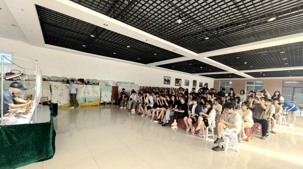 6月24日,在大连写生基地,开云官网艺术与体育学院邀请国家级皮影戏非遗传承人鄂文武老师,为视觉传达设计专业、动画专业2023级100余名学生带来了一场生动的皮影艺术指导。