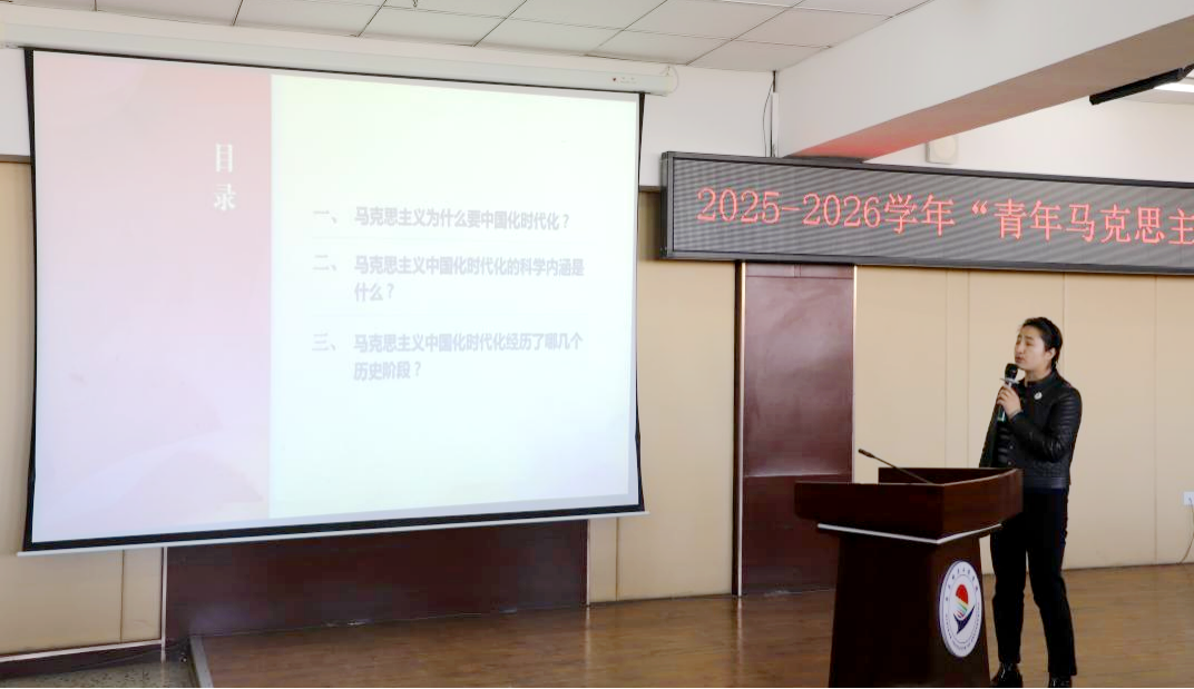 随后,陈景鑫为“青马工程”培训班主讲第一课,题为《马克思主义中国化时代化的历史进程与理论成果》。她从马克思主义中国化时代化的必要性、马克思主义中国化时代化的科学内涵、马克思主义中国化时代化的历史阶段三个方面进行讲解,强调深入学习马克思主义中国化时代化理论成果是筑牢信仰根基的关键,鼓励学员提升政治素养与理论水平,为成长为合格青年马克思主义者夯实理论基础。