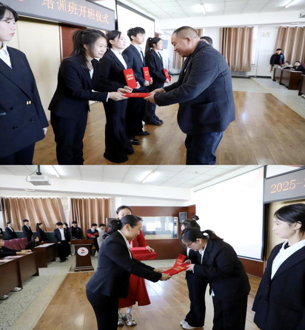 王丽萍、孙晓芳为2024-2025学年“青马工程”培训班优秀学员代表颁发荣誉证书。