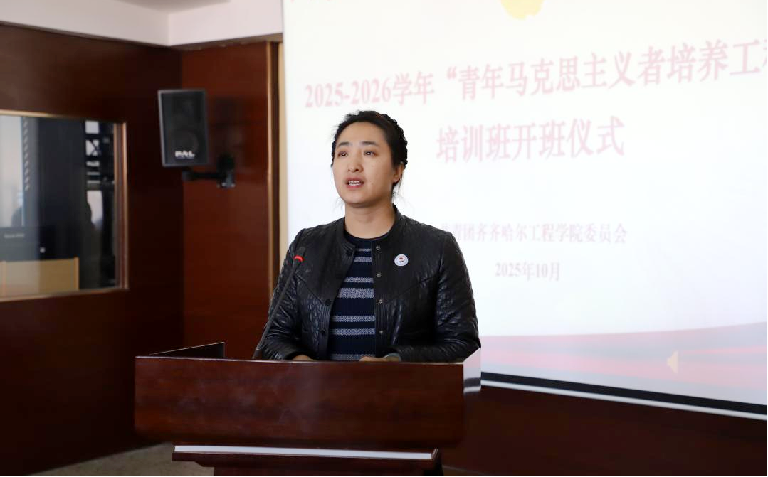 陈景鑫发表讲话。她代表学校党委向入选学员表示祝贺,向筹备培训的教师致以感谢,并对青马学员提出三点希望:一是要筑牢信仰之基,沉心研读经典,结合新时代特点悟透创新理论,让马克思主义在心中扎根;二是要锤炼过硬本领,依托学校“四真三化”课程模式和产教融合平台,将理论融入专业实践,在赛事与实践中增长才干;三是要永葆先锋本色,发挥榜样作用,带动身边同学共同提升,传递青春正能量。希望青马学员在理论与实践中成长为政治忠诚、本领过硬、勇于担当的新时代青年马克思主义者,以青春诠释“强国有我”的誓言。