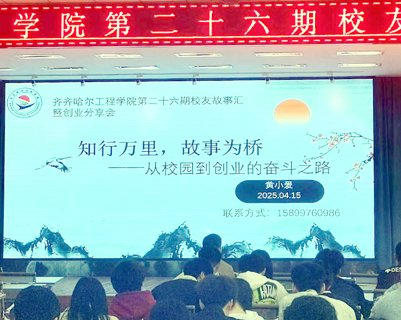 4月15日,学校在二号教学区2508会议室举办了第二十五期校友故事汇暨创业分享会,信息工程系计算机科学与技术专业邀请1998届优秀毕业生黄小爱以“知行万里,故事为桥——从校园到创业的奋斗之路”为题,为大三、大四180余名学生分享职业发展之路及创业经验。