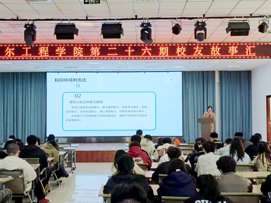黄小爱首先与在校学生追忆当年入学校时场景,讲述学校历史与曾经的青葱岁月。随即她分享毕业后自己的生涯发展之路,以及与校友叶剑华共同创业历程。并播放叶剑华对母校的怀念与祝福视频。