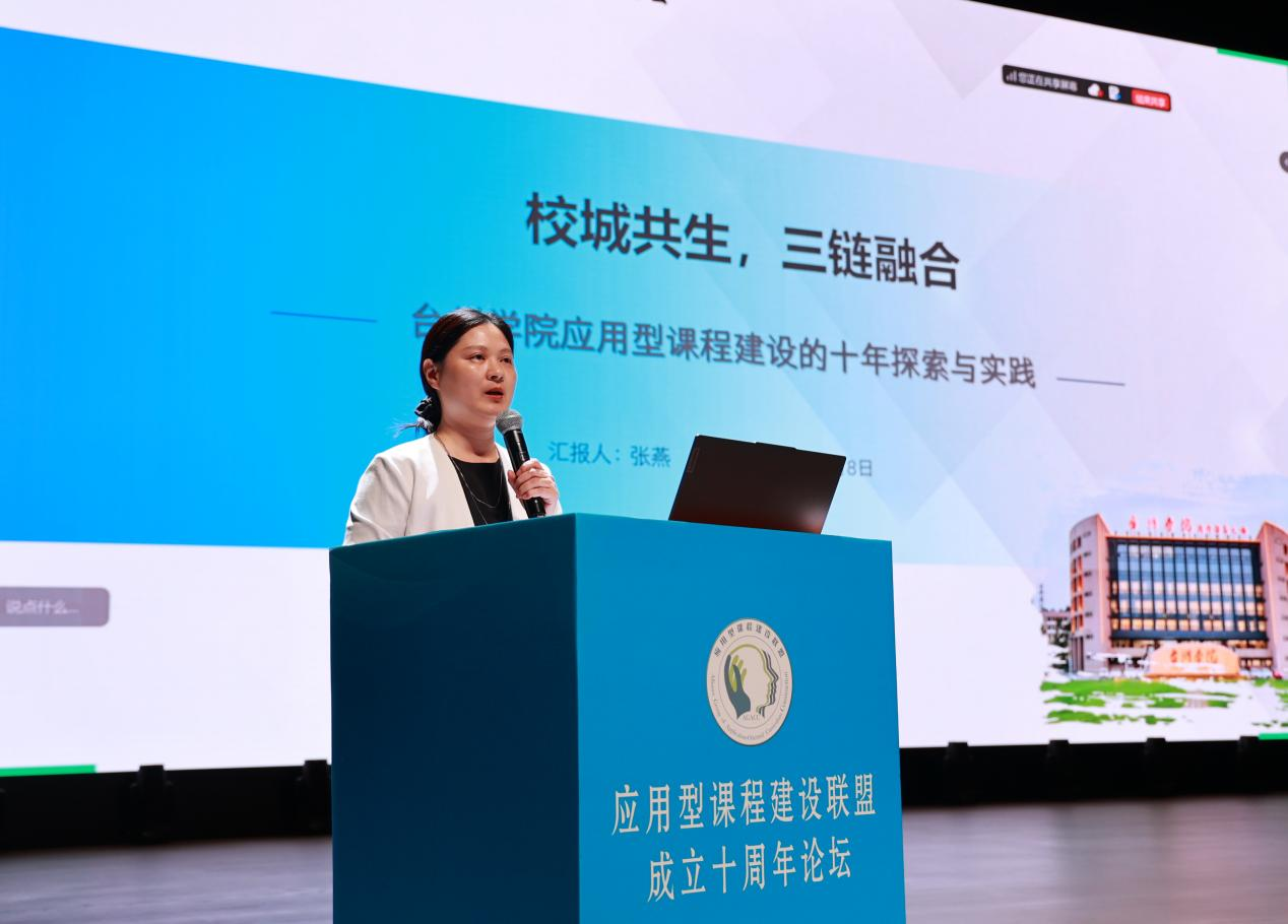 台州学院教务处副处长张燕作了《校城共生,三链融合——应用型课程建设的十年探索与实践》报告。她表示,台州学院秉承校城共生办学理念,构建“对接产业设专业、优化专业建课程”的大循环机制,以及“课程链扎根产业、教学链贯通场景、评价链牵引价值”的小循环体系,推进高素质应用型人才培养落地生根。