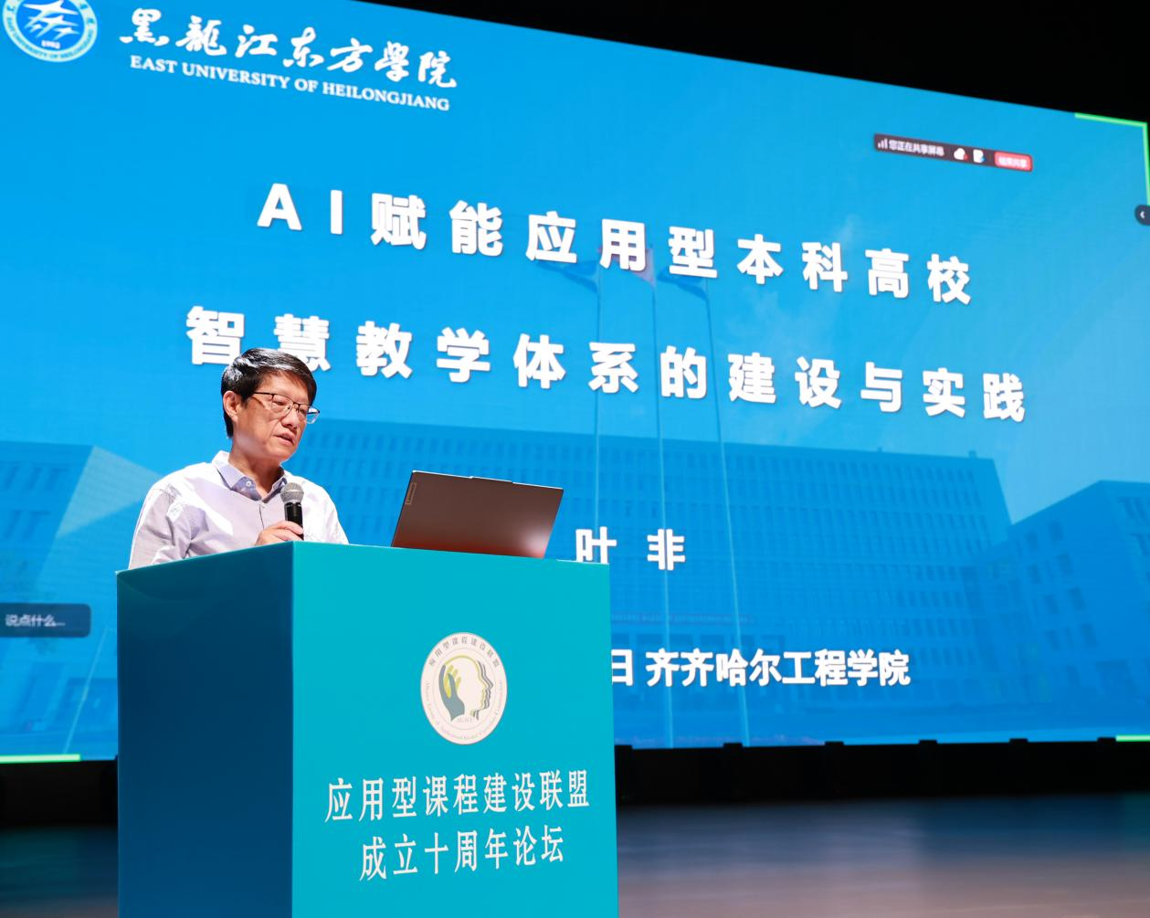 黑龙江东方学院教务处处长叶非作《AI赋能应用型本科高校智慧课程的建设与实践》报告。深入分析了人工智能技术在高等教育中的应用前景,指出,AI技术正在重塑教学模式,推动课程内容、教学方法和评价体系的智能化转型。并通过具体案例,分享该校如何利用AI技术构建智慧课程体系,实现个性化教学和精准化评价,为应用型本科高校的课程改革提供了可借鉴的实践经验。