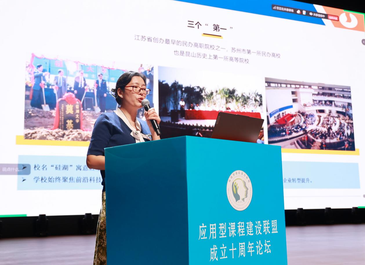 硅湖职业技术学院教学发展中心主任屈赛英作《一体两翼培育创业人才,AI赋能FT课程建设》报告。她表示,硅湖职业技术学院以“四真三化(FT)”课程建设为基础,通过全员培训、深度开发和分批验收,构建应用课程体系。在AI赋能教育方面,学校成立专项小组,开展系统培训与竞赛活动,成功立项多门AI数智FT金课,并在AI赛事中斩获多个奖项。这些创新实践不仅提升了教学精准度,更为培养复合型技术技能人才提供了智能化解决方案,展现了职业教育数字化转型的价值。